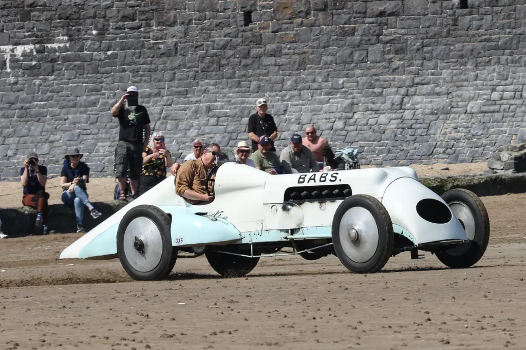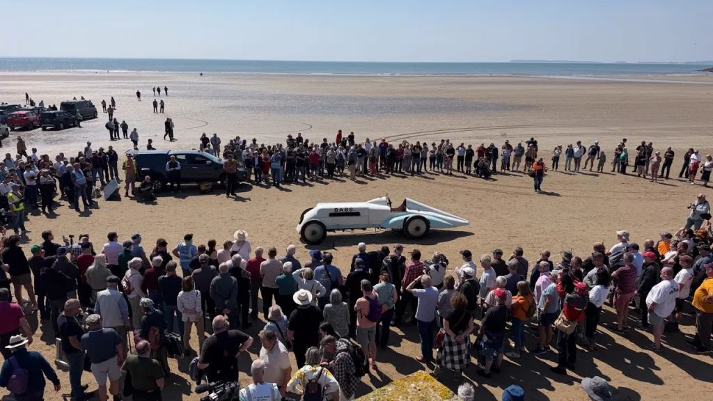 ‘Babs’ is back with a crowd-pleasing roar and a celebratory re-run over Pendine Sands